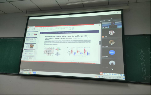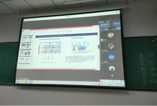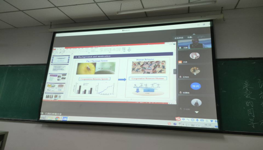 在报告会中,石磊教授用通俗易懂的语言首先介绍了通过统计建模及数据分析开展的系列研究成果,并启发统计学工作者如何与其他学科结合开展交叉研究。主要包括两个方面: 1.在异值网络结构下的公共品博弈实验中,发现自由的策略选择有助与合作的形成。2.利用实验经济学方法设计并进行了系列有无退 出选择的重复公共品博弈(PGG)实验。为我们在后续的学习提供了更好的知识储备,夯实了我们在计的理论基础,为同学们今后的学习提供了更多思路。