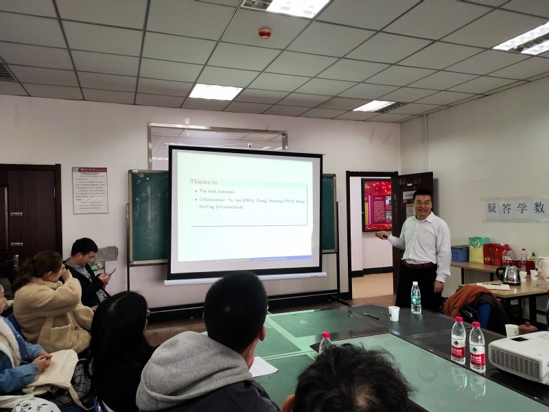 在报告中,艾教授首先基于大数据集的计算、储存及可视化问题,介绍了最优抽样技术的背景,简要回顾了广义线性模型的基本知识,并总结了前人就这一问题提出的最优抽样方案。艾教授考虑广义线性模型,使用Newton-Raphson方法获取出最大似然估计,还基于最佳子采样概率推导了子样本估计量的有限样本属性。由于最佳子采样概率取决于完整的数据估计,因此开发了自适应两步算法。利用该自适应算法建立了估计量的渐近正态性和最优性。最后,艾教授展示了不同模型设置下的模拟结果,与已有的方法相比,新方法的均方误差更小,且抽样用时更短。最后艾教授展示了两个实际数据的分析结果,也说明新方法的表现更好。
