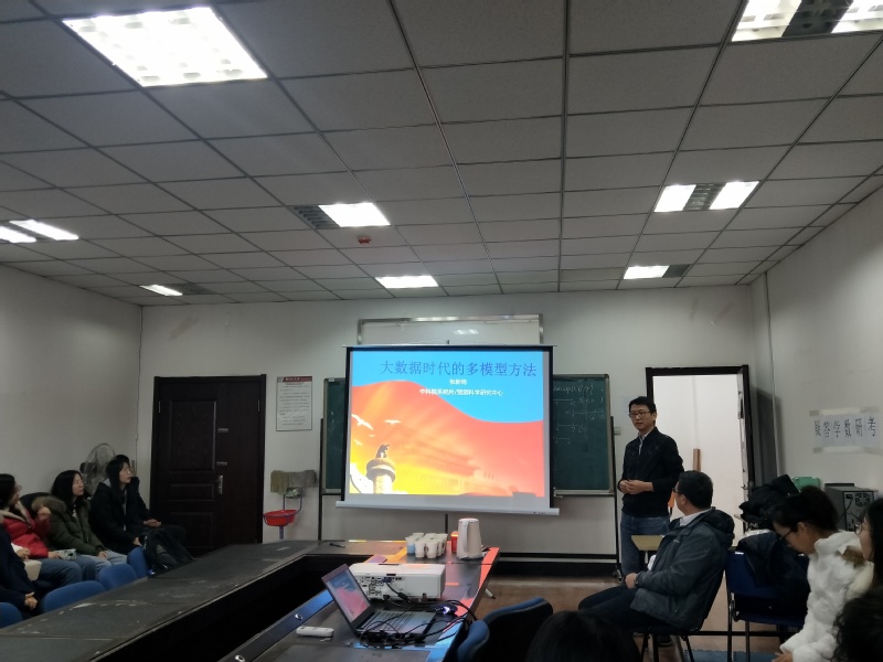2019年11月17日上午10点在南湖校区新图书馆6楼5608室,中国科学院系统所/预测中心研究员张新雨教授莅临我院做学术报告,会议由学院副院长徐平峰老师主持,学院部分老师、研究生、及本科生和其他学院师生参加了本次学术报告会。