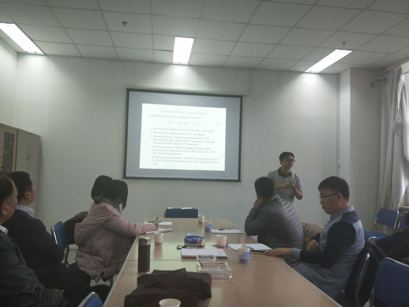 报告会中孔新兵老师结合他多年的学习,教学和研究经验,由因子模型引出主题。首先,给出了建立模型的合理依据和创新点,并对过程中的细节进行了讲解。接下来,对高频数据的概念进行介绍,“频率越抽越高”用来形容“高频”。又对高频数据建立时间连续的因子模型。过程中,孔老师发现数据的不平稳不适合用全局PCA,而选用了局部PCA,进行估值,维数越高,则数据越准。又对近期未解决的四个问题进行了一一说明,并表示要继续研究。最后,beat365官方网站的老师和同学们与孔老师进行了互动,孔新兵老师对同学们提出的问题进行了详细的解答,并激励同学们努力学习,坚持脚踏实地的学习理论知识,为数学与统计学的发展不懈努力。