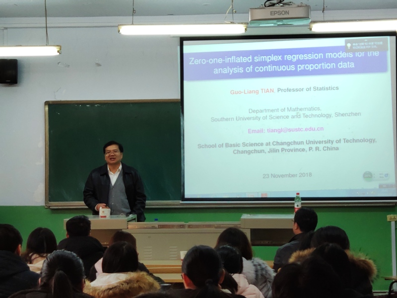 田国梁简介:田国梁,现任南方科技大学数学系统计学正教授、博士生导师。田教授于1988年获得武汉大学统计学硕士学位、于1998年获得中国科学院应用数学研究所统计学博士学位。从1998至2002年,他分别在北京大学概率统计系和美国田纳西州孟斐斯市的St. Jude儿童研究医院生物统计系从事博士后研究, 2002年至2008年他在美国马里兰大学Greenbaum癌症中心任Senior Bio-statistician。2008年至2016年他在香港大学统计及精算学系任副教授、博士生导师。田教授是国际统计学会(ISI)当选会员,他担任Computational Statistics & Data Analysis, Statistics and Its Interface等四个国际统计学杂志的副主编。他主要的研究领域是生物统计,计算统计和社会统计。目前的研究方向包括多元零膨胀计数数据分析、(0, 1)区间上连续数据(以及其推广,即成份数据)的统计分析,和不完全分类数据分析。他首次提出的分组Dirichlet分布、套Dirichlet分布和G分布在统计分布领域属于创造性的工作, 在生物统计中具有广泛而重要的应用; 他将非随机化的概念引入到敏感性问题的随机化应答技术中, 发展了一个称之为非随机化应答技术的新研究方向。他首次提出了一个新的组装分解(assembly-decomposition)方法用以构造MM算法中的替代函数,为MM算法在统计学中的广泛应用开辟了通道。到目前为止,他在国际顶尖生物统计学期刊Statistical Methods in Medical Research, Statistics in Medicine, Biometrics发表论文14篇,在其他统计学期刊发表论文90余篇,且在美国著名出版社John Wiley & Sons和Chapman & Hall/CRC出版英文专著3部,且在科学出版社出版英文教科书1本。2017年他的研究课题< >获得国家自然科学基金面上项目的5A资助。2018年他(排名第二)与南方科技大学环境科学与工程学院郑焰教授的联合研究课题< <中国北方地下水砷不同尺度空间非均质性驱动机制>>获得国家自然科学基金重点项目的资助。