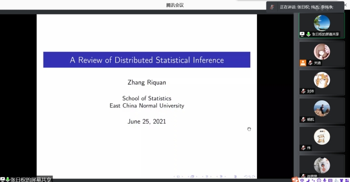 2021年6月25日下午1点30分,我院特邀华东师范大学统计学院院长张日权教授做线上学术报告,报告由beat365官方网站院长王纯杰老师主持,学院部分老师、全体研究生参加了本次线上学术报告会。