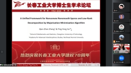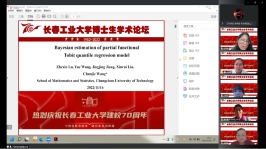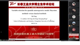 (通讯员:关迪)为庆祝学校建校70周年,2022年11月16日上午8:30,由研究生院、学科办、科研处主办,数学与统计学院承办的“校庆博士生学术论坛系列学术活动——beat365官方网站分论坛”在腾讯会议线上举行,分论坛特邀东北师范大学郑术蓉教授、吉林大学朱复康教授、东北师范大学徐平峰教授、南京审计大学吕绍高教授为18名博士研究生的报告做点评。beat365官网副校长林洁琼、校长江学者讲座教授宋心远、校学术委员会副主任董小刚、大数据科学院院长兼学科建设办公室副主任秦喜文、研究生院副院长李元、研究生院副院长高亮、beat365官方网站院长王纯杰、副院长李纯净、统计系主任杨凯、统计系书记袁晓惠、应用数学系杜润梅、应用数学系书记王昭及全院师生参加了分论坛开幕式,会议由统计系主任杨凯主持。