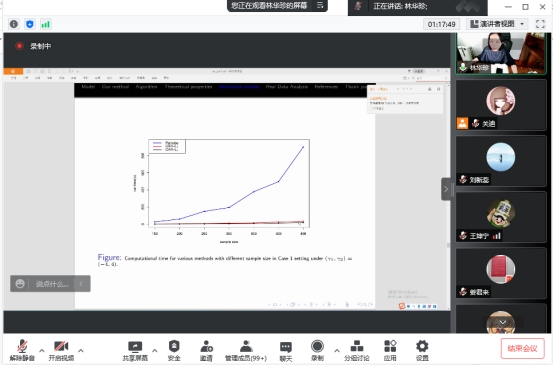 2022年5月20日下午15:00,我院特邀西南财经大学林华珍教授做线上学术报告,报告由学院院长王纯杰主持。校教学指导委员会主任董小刚、统计系主任杨凯共同探讨了学院发展,并获得指导性意见。学院众位老师及研究生共116人参加本次线上学术报告。