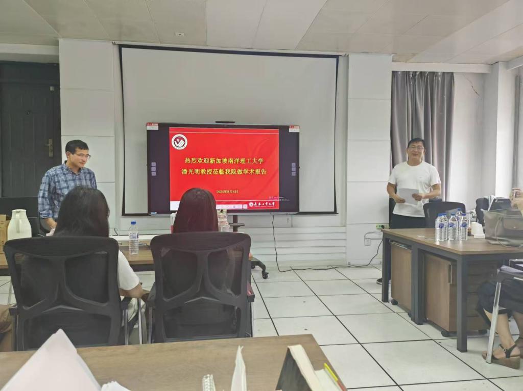 (通讯员:关迪)2024年8月5日上午10:00,新加坡南洋理工大学潘光明教授莅临我院做学术报告,在南湖校区老图书馆四楼左侧研究生5-1学习室进行,报告由beat365官方网站副院长杨凯副教授主持,学院部分老师及研究生参加了本次学术报告会。