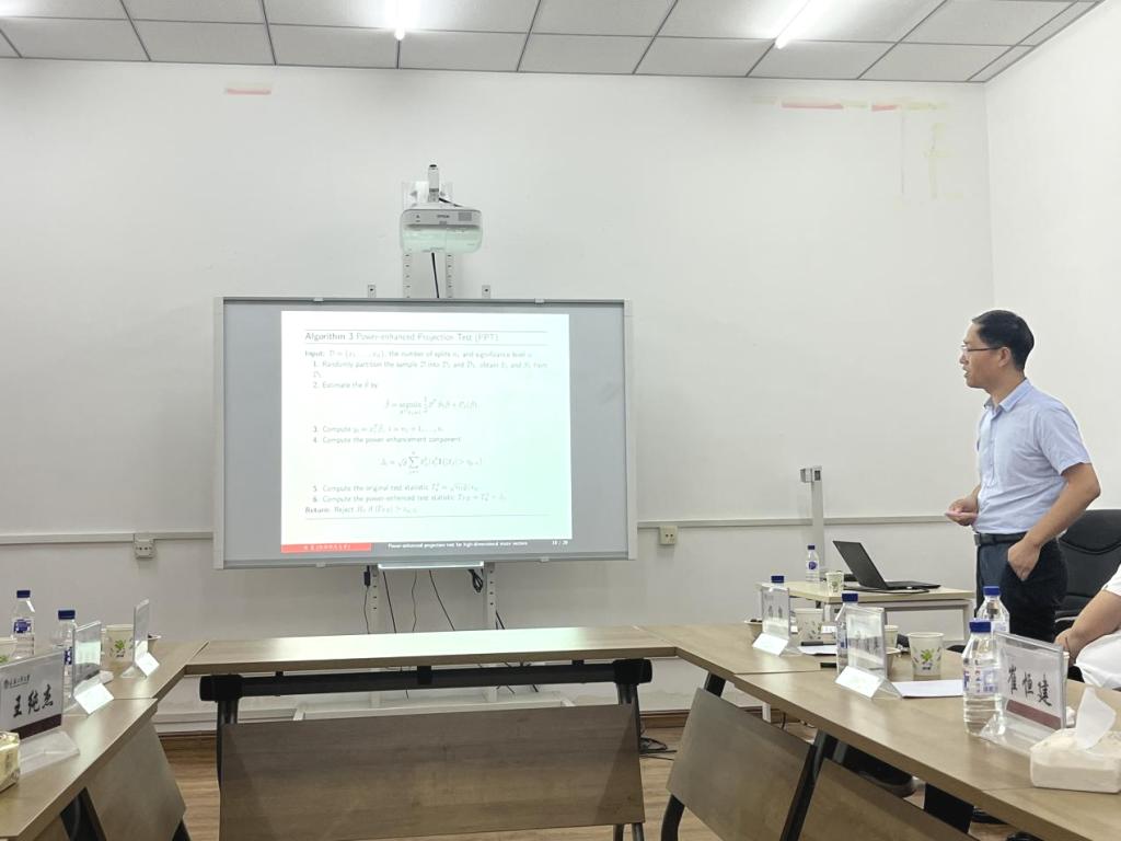在接下来的报告中,陈教授介绍了针对高维数据的增强功效投影检验方法,通过降低维度和增加检验功效,解决传统方法在高维数据中的局限性。