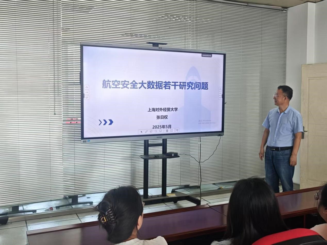 (通讯员:刘文姝)2025年5月27日上午9:30,上海对外经贸大学张日权教授莅临beat365官方网站,针对我国航空安全大数据的研究现状、核心成果及待解科学问题,开展了一场专业且富有启发性的学术报告。本次报告由beat365官方网站承办,在南湖校区老图书馆四楼会议室进行,会议由beat365官方网站副院长杨凯教授主持,学院部分老师及研究生参加了本次学术报告会。