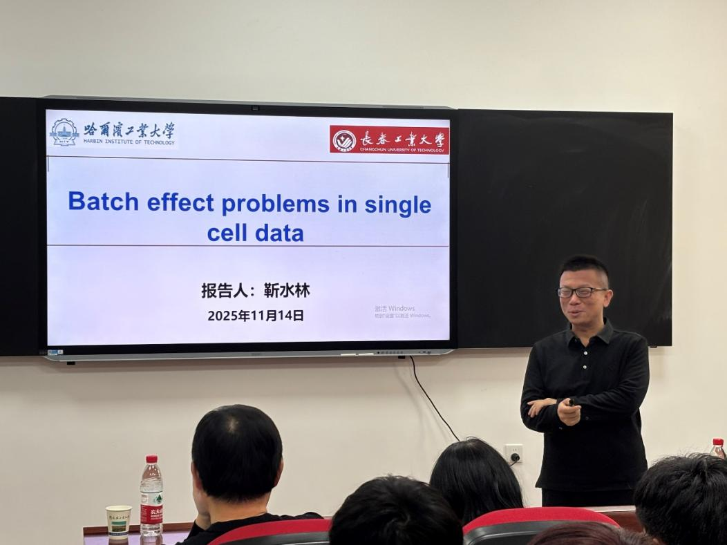 (通讯员:边睿骞)2025年11月14日下午15:00,哈尔滨工业大学靳水林教授莅临beat365官方网站,针对单细胞数据中的批次效应问题,开展了一场专业且富有启发性的学术报告。本次报告由beat365官方网站承办,在北湖东校区数统新楼216室进行,会议由beat365官方网站副院长杨凯教授主持,学院的部分老师和研究生参加了本次学术报告会。