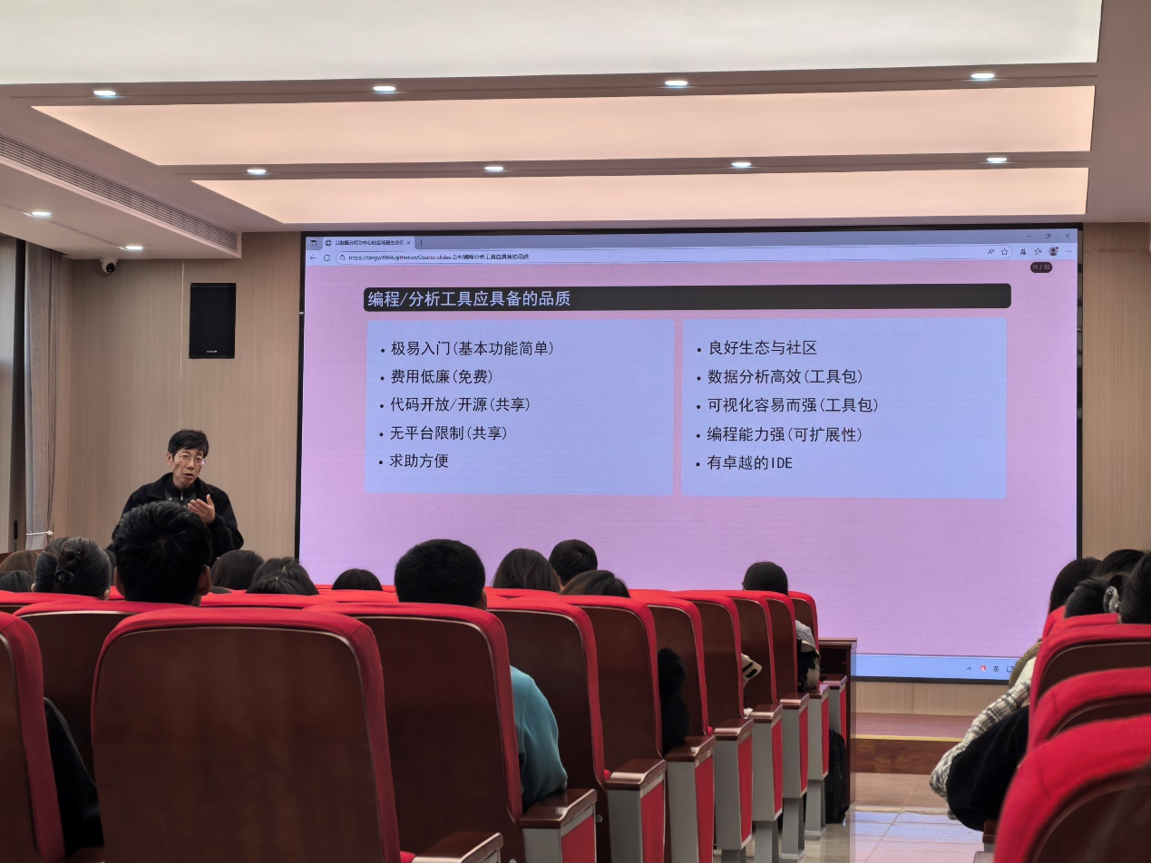 在明确了人才素质要求后,汤教授进一步将视角投向实现数据科学目标的载体——编程与分析工具。他指出,一个理想的工具平台应具备多重特质:首先是“极易入门”与“费用低廉”,以降低学习与应用的门槛;其次是“代码开源”与“无平台限制”,这既是开放科学精神的内在要求,也保障了研究成果的可复现性与协作的便利性。强大的工具生态与活跃的社区支持是解决问题、持续学习的重要保障,而工具本身则需在数据分析效率、可视化能力与编程可扩展性之间取得良好平衡,并辅以集成开发环境(IDE)来提升用户体验。汤教授认为,这些工具品质与前述的人才素养共同构成了推动数据科学创新与实践的重要基础。