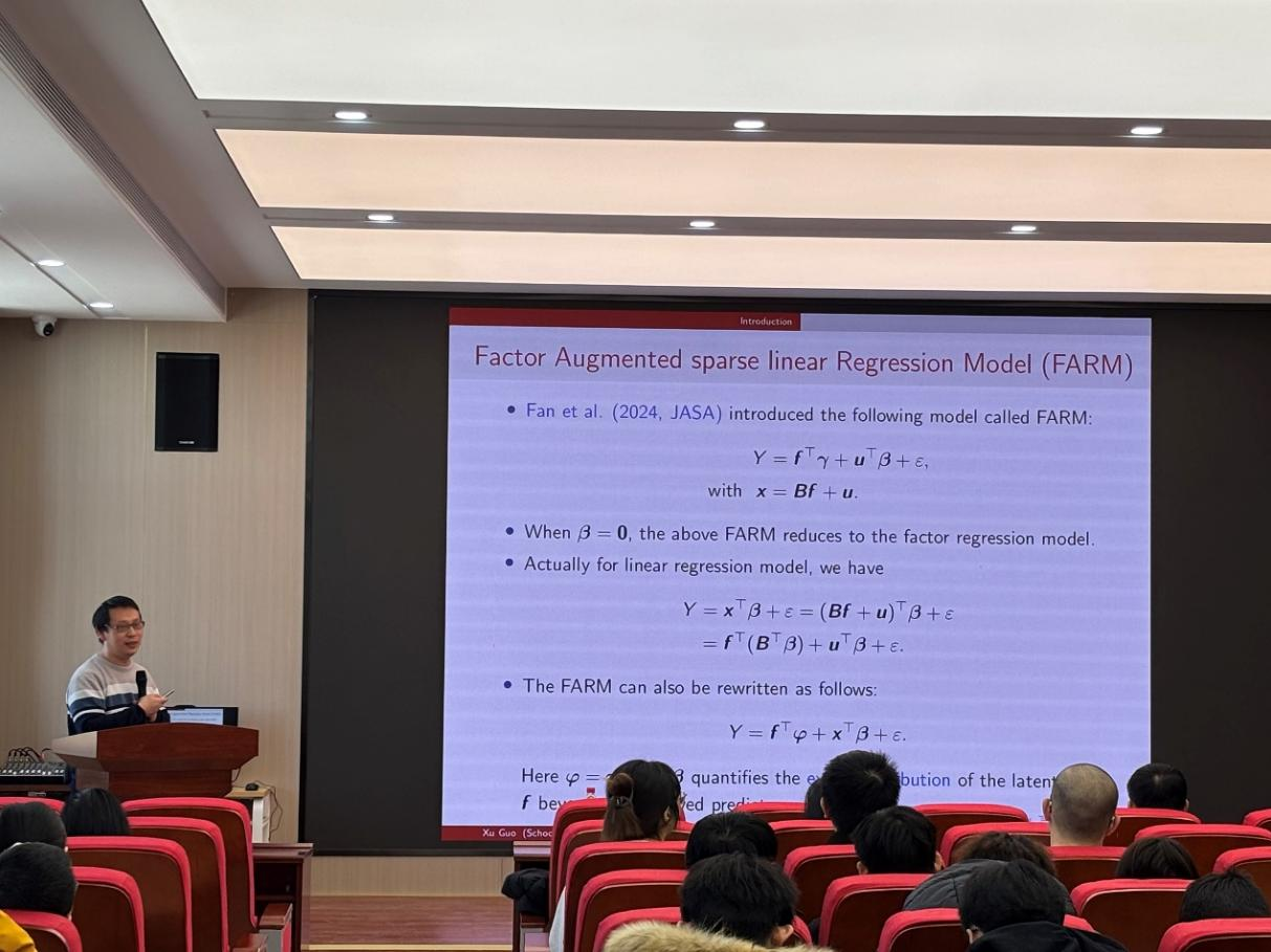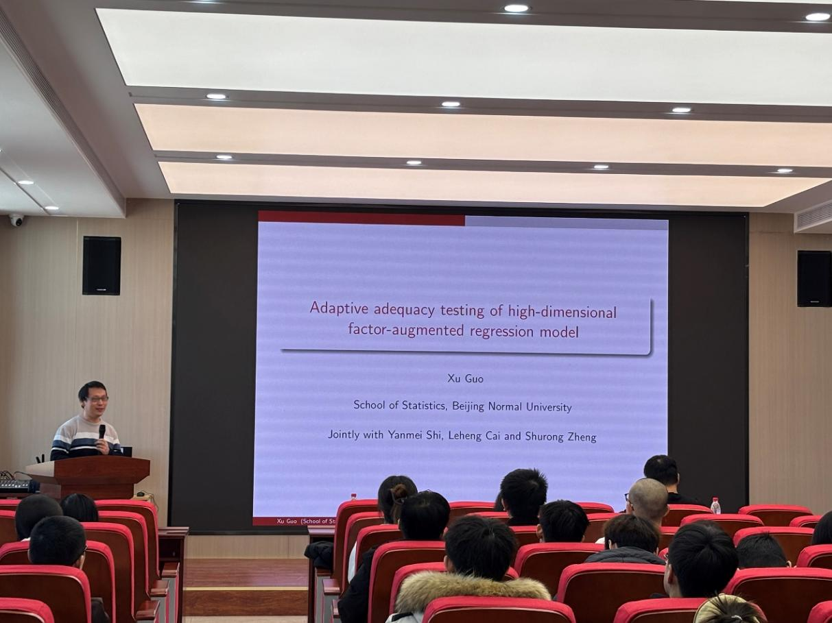 (通讯员:边睿骞)2026年1月8日下午13:30,我院特邀北京师范大学统计学院郭旭教授做学术报告。本次报告由beat365官方网站承办,会议由学院副院长杨凯教授主持,学院袁晓惠老师等及部分研究生参加了本次学术报告会。