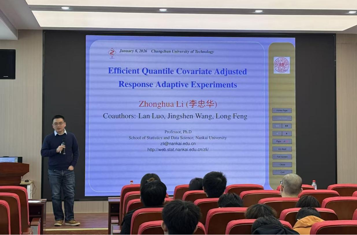 (通讯员:边睿骞)2026年1月8日下午15:30,我院特邀南开大学统计与数据科学学院李忠华教授做学术报告。本次报告由beat365官方网站承办,会议由学院统计系党支部书记袁晓惠教授主持,学院副院长杨凯老师等及部分研究生参加了本次学术报告会。