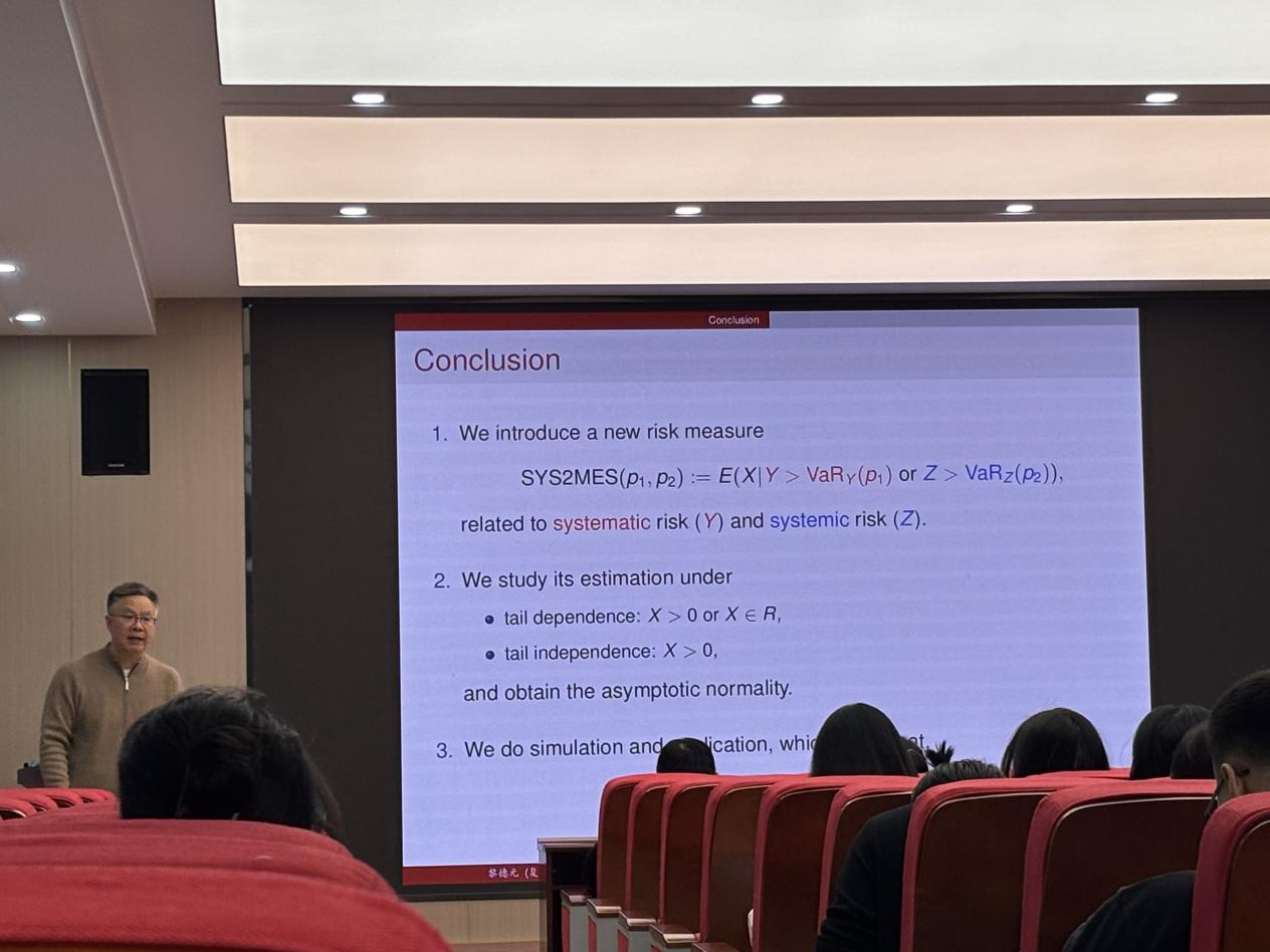 最后,黎教授总结了本文研究的主要贡献。黎教授提出并系统构建了一个新型风险度量指标——SYS2MES。通过模拟实验和实例分析可以得出如下结论:SYS2MES作为一个更全面、更敏锐的联合风险度量工具,不仅在理论层面拓展了极端风险测度的框架,更在实践层面为金融机构与监管者识别系统脆弱性、实施针对性风险防控提供了更可靠的决策依据。
