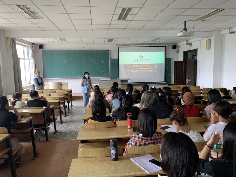 随后,应用数学系主任刘铭、统计系副主任杨凯分别对数学、统计学两个学科的培养、就业、学科进行了具体介绍,详细讲解专业学习、科研工作中需要注意的环节,尤其强调了要注重学术道德、强化学术规范、塑造健全人格。研究生教学秘书关迪就在校读研期间的课程学习、学位论文工作向研究生同学做了相应的说明。