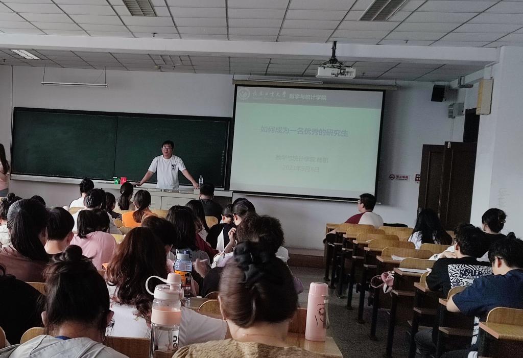 (通讯员:朱林敏)盛夏已收获,金秋再起航。值此崭新学年开始之际,为进一步帮助学生完成本科生与研究生的角色转换,指导学生合理规划日常学习生活,2023年9月8日上午10时,学院在科研楼307教室召开了 “如何成为一名优秀的研究生”专题讲座。本次讲座由学院副院长兼统计系主任杨凯主讲,2023级全体研究生参加了本次活动。