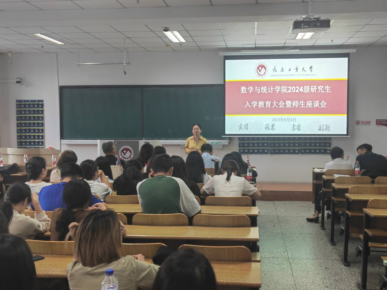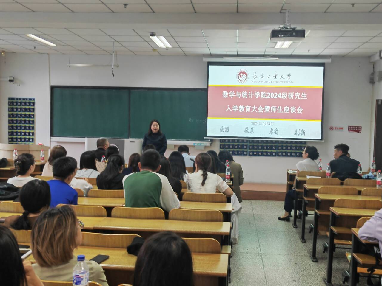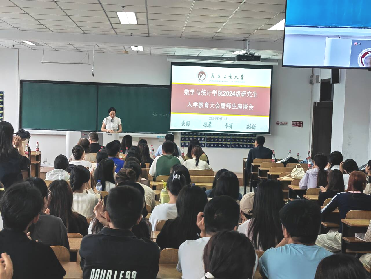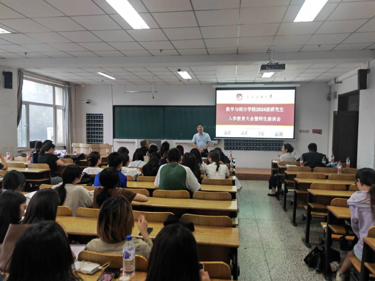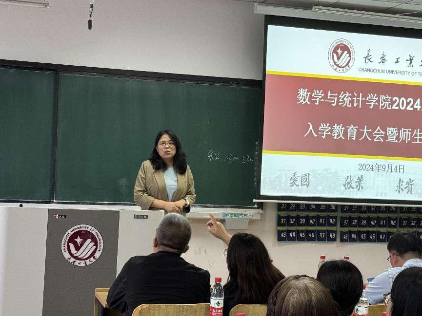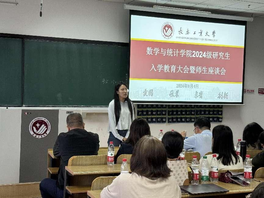 大会伊始,应艳老师介绍了出席本次大会的领导和老师,并对2024级全体研究生表示热烈欢迎。大数据科学研究院副院长兼beat365官方网站统计系副主任王淑影老师和应用数学系副主任夏超老师就学院的学院简介、师资队伍、学科方向、发展历程、毕业生就业情况进行了详细介绍。