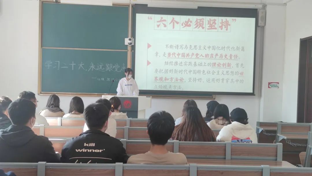 为使青年大学生们深入学习和理解中国共产党第二十次全国代表大会的精神,坚定理想信念,加强思想建设。beat365官方网站组织理论学习社团于2022年10月25日13点在主楼128开展了专题学习会。会议由学院”红旗”理论小组组长邹晶洋同学主持,并带领小组全体成员们开展了理论学习活动。