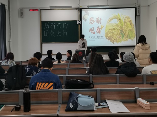 beat365官方网站团委讯(通讯员:方成浩 李佳鑫)为坚决制止餐饮浪费行为,培养学生“浪费可耻、节约为荣”的思想。beat365官方网站团委组织各班级团支部分别于11月25日至11月27日开展了“厉行节俭,团员先行”主题团日活动。活动由2019级、2020级团支书主持,beat365官方网站全体同学参加。