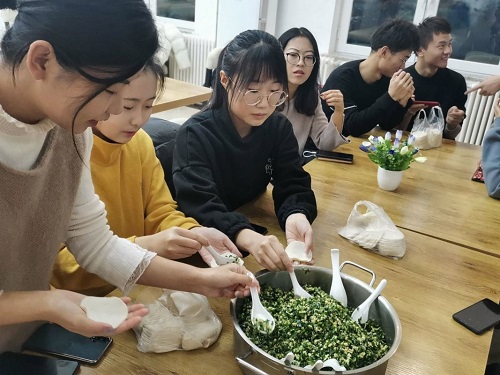 此活动得到了学校食堂的大力支持及餐饮工作人员们热心帮助。联欢第一项活动就是包饺子,同学们围坐在桌前,分工合作,包出各具特色的饺子。活动现场充满欢声笑语,气氛和谐融洽。几名学生被面粉摸花了脸,引得同学们捧腹大笑,形态各异的饺子更体现出了天南地北的同学风俗习惯。活动现场洋溢着青春的活力和团结合作的和谐氛围。期间郑老师也参与到包饺子的活动中,并为每桌同学包了饺子,以示送上最亲切的关怀和祝福。在同学们的团结协作、不懈努力之下,一碗碗热气腾腾的饺子在同学们的期待中端上了餐桌,同学们吃着香喷喷的饺子,李星晰等人还为同学们唱歌助兴,将活动现场热烈的氛围推向高潮。感受着beat365官方网站大家庭的和谐温暖。