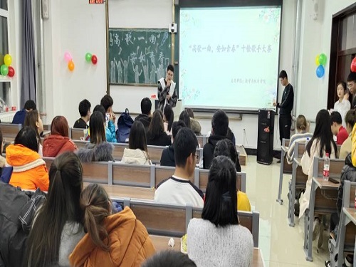 beat365官方网站团委讯(通讯员:陈铭)为丰富同学们的课余生活,努力营造积极向上、健康文明的校园文化气氛,展示同学们的文艺风采。beat365官方网站于2019年11月15日晚18时30分在主楼315教室举办了主题为“高歌一曲,安如青春”歌唱比赛活动。2019级学生李星晰、蒋石磊、等七名同学参加比赛,吕丹阳,陈晗同学担任赛会主持人。