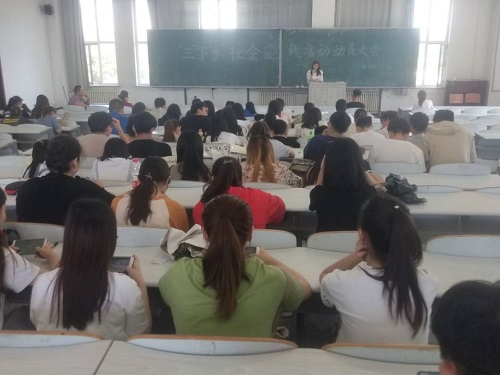 学院团委召开的本次 “三下乡”社会实践活动动员大会,在为学生们说明大学生志愿者社会实践活动的内容和方式的同时,旨在使学生们积极为社会做出有益贡献的过程中,深刻体会和领悟习近平新时代中国特色社会主义思想,强化青年大学生们坚持“四个自信”的思想政治育人要求,更加坚定了以奋斗的青春去建设和实现美丽中国的青春梦想。