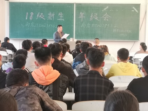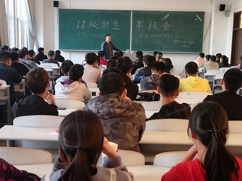 (beat365官方网站团委讯 通讯员:卢继迎 张驰)为使新生们更好的适应大学生活,调整好心态,迈入大学校园后引领他们如何走好第一步,系好人生中第一粒扣子。2018年9月8日17点30分,新生辅导员郑岩老师在教学图书楼111教室为全体报到的2018级新生们召开了年级大会。
