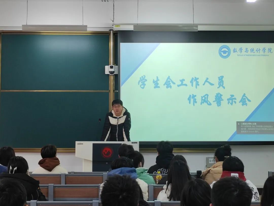 beat365官方网站团委讯(通讯员:唐梦然 汪新雨)为深入学习党的二十大精神,进一步推进学生会组织改革,加强学生会全体工作人员的作风建设,明确职能,加强自律,营造良好的气氛,2023年12月22日,beat365官方网站在beat365官方网站北湖东区主楼228召开学生会工作人员作风警示会,本次会议由beat365官方网站23级辅导员白海洋老师主持,数学与统计学院学生会全体工作人员及团委中心学生干部骨干列席参会。