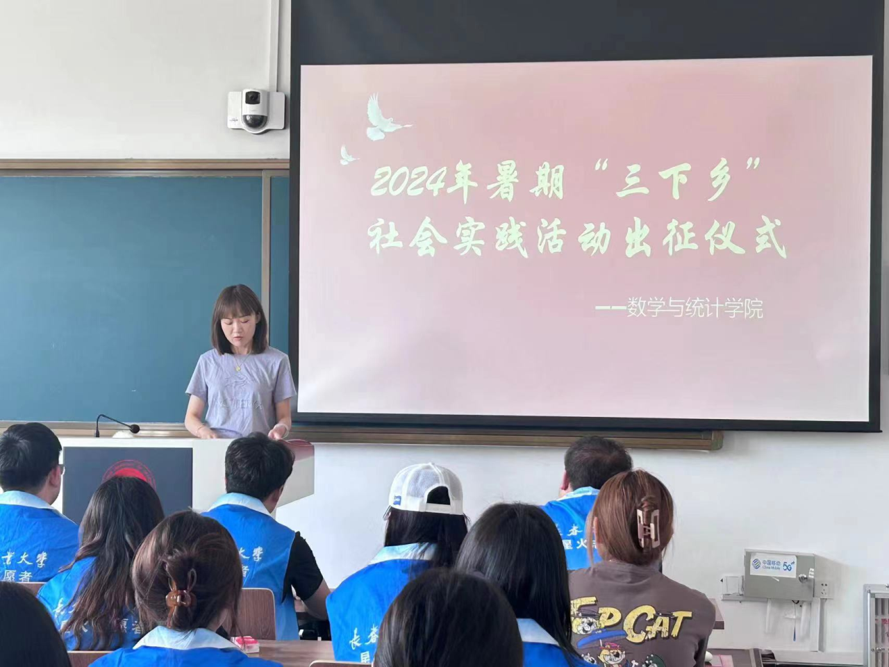 首先,庄老师宣布了本次参与“三下乡”社会实践活动的服务队名单,希望大家能够以积极的态度,饱满的热情投入到“三下乡”社会实践活动之中,以脚丈民乡,以眼见民风,以耳听民声,用心感受时代脉动,让青春在实践中绽放绚丽之花!