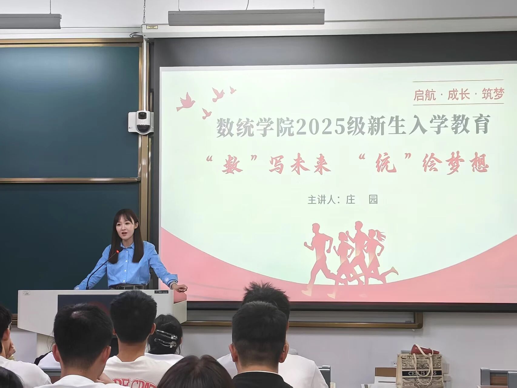beat365官方网站团委讯(通讯员:赵子茉 李佳程)为了帮助2025级新生尽快适应大学生活、明确学业规划,beat365官方网站于9月8日晚在主楼232和240教室开展以“‘数’写未来,‘统’绘梦想”为主题的新生入学教育课。本次课程由学院团委书记、2025级本科辅导员庄园老师主讲,2025级全体新生参加。