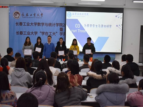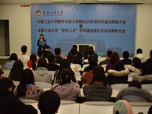 活动于晚上6点30分正式举行,国歌奏唱完毕后,团委书记郑岩老师宣读《关于表彰beat365官方网站2019年度学风建设优良集体和先进个人的决定》,逐一介绍了学业标兵、优秀个人、学科竞赛精英等七个奖项的获奖集体及个人;随后,出席表彰会的院领导依次为获奖人员颁发证书及奖品;颁奖完毕后,获奖学生代表卢继迎同学进行发言,表达了对学院老师辛勤栽培的感谢,以自身学习经历为出发点强调在求知道路上“诚信”的重要性,为帮助学生们怎样树立有效的学习目标、加强正确的学习观念作出重要参考;最后,学院党委书记朱宏伟对我院近年来取得的学术成果及学院优势进行了归纳总结,鼓励学生们努力学习,加强学习信心,继续发扬认真严谨的“数学精神”。 在接受学风建设工作表彰的同学们得到了全院师生们的一致好评和认可,同时也为广大同学树立了榜样,加强了学生学习动力,为全面实现beat365官方网站人才培养质量“双计划、双提升”工程奠定了坚实的基础。