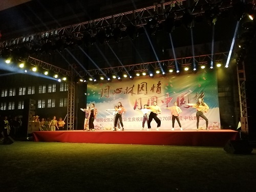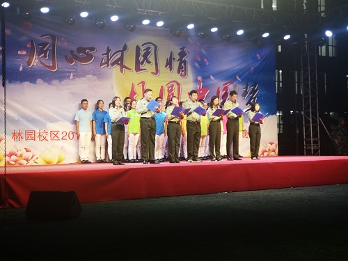 beat365官方网站团委讯(通讯员:张及佳 桂尚珂)林园校区全体师生在喜迎庆祝新中国成立70周年之际,正逢传统节日,中秋佳节,丰富军训期间大一新生的校园文化生活,充分给予2019级新同学们一个展现自我,施展才华的舞台,2019年9月13日晚七点,由beat365官方网站学生工作部、武装部主办,beat365官方网站协同经济管理学院、公共管理学院、外国语学院、艺术设计学院和信息传播工程学院五个学院,在林园校区体育场隆重地举行“同心林园情,月圆中国梦”——庆祝新中国成立70周年暨中秋晚会。校级领导,各学院领导,新生辅导员老师出席晚会,林园校区6个学院的1500余名的2019级新生热情洋溢地观看了本次晚会。