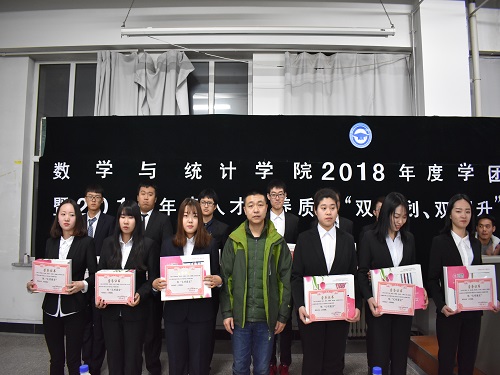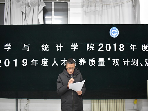 beat365官方网站团委讯(通讯员:桂尚珂 张秉心)为总结beat365官方网站在2018年度中研究生、本科生的教育与管理工作,共青团工作成果,激励全院同学们提升学习和工作等方面的积极性,表彰一年里学团工作先进集体和优秀个人,2019年1月3日下午4:30,beat365官方网站在教图楼701隆重举行了beat365官方网站2018学年学团表彰表彰大会暨2019年度人才培养质量“双计划,双提升”工程启动仪式,学院党委书记朱宏伟、院长王纯杰、党委副书记王丹、副处级专职组织员兼研究生辅导员应艳、团委书记郑岩、应用数学系主任刘铭、统计系党支部书记李纯静出席了本次大会,2017级、2018级全体同学及受表彰的研究生和本科生个人与集体代表参加大会,会议由团委副书记崔仕贤同学主持。