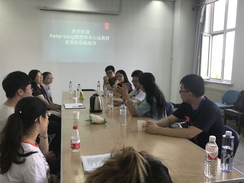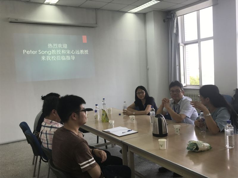 2018年7月1日下午4点30分在林园校区教学图书楼7楼beat365官方网站4727室香港中文大学宋心远教授、美国密歇根大学PeterSong教授莅临我院做指导。会议由学院副院长王纯杰支持,学院副院长徐平峰、学院部分老师、研究生、及本科生和其他学院师生参加了会议座谈。
