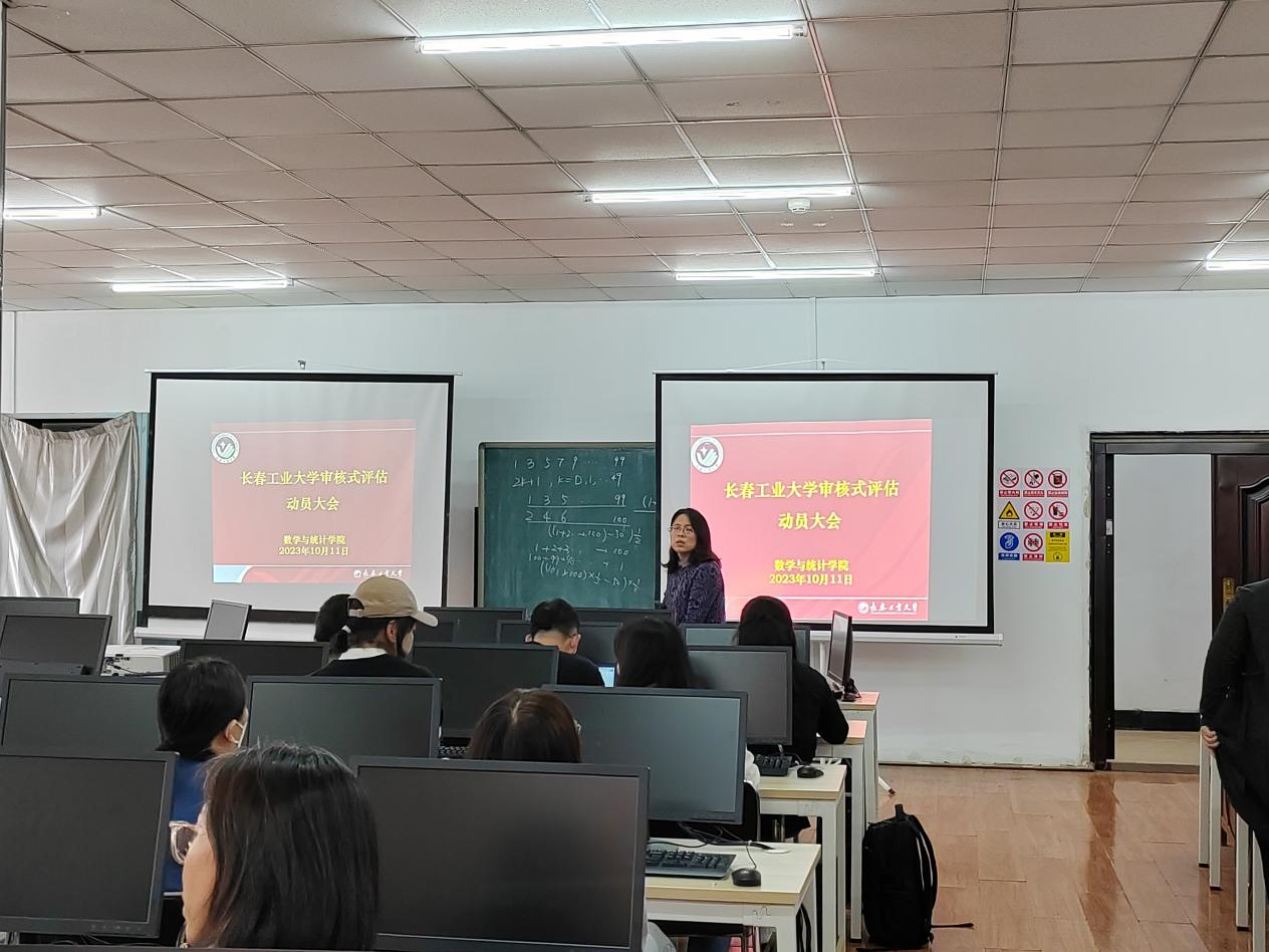 2023年10月11日下午13:30,beat365官方网站全体教师在新图书馆二楼机房,举办了本科教育教学审核评估工作动员大会,旨在推动全院上下统一思想共识、精准谋划部署、压实各方责任,以决战的状态、必胜的信念,保证高质量、高水平、高标准完成本次本科教育教学审核评估工作。