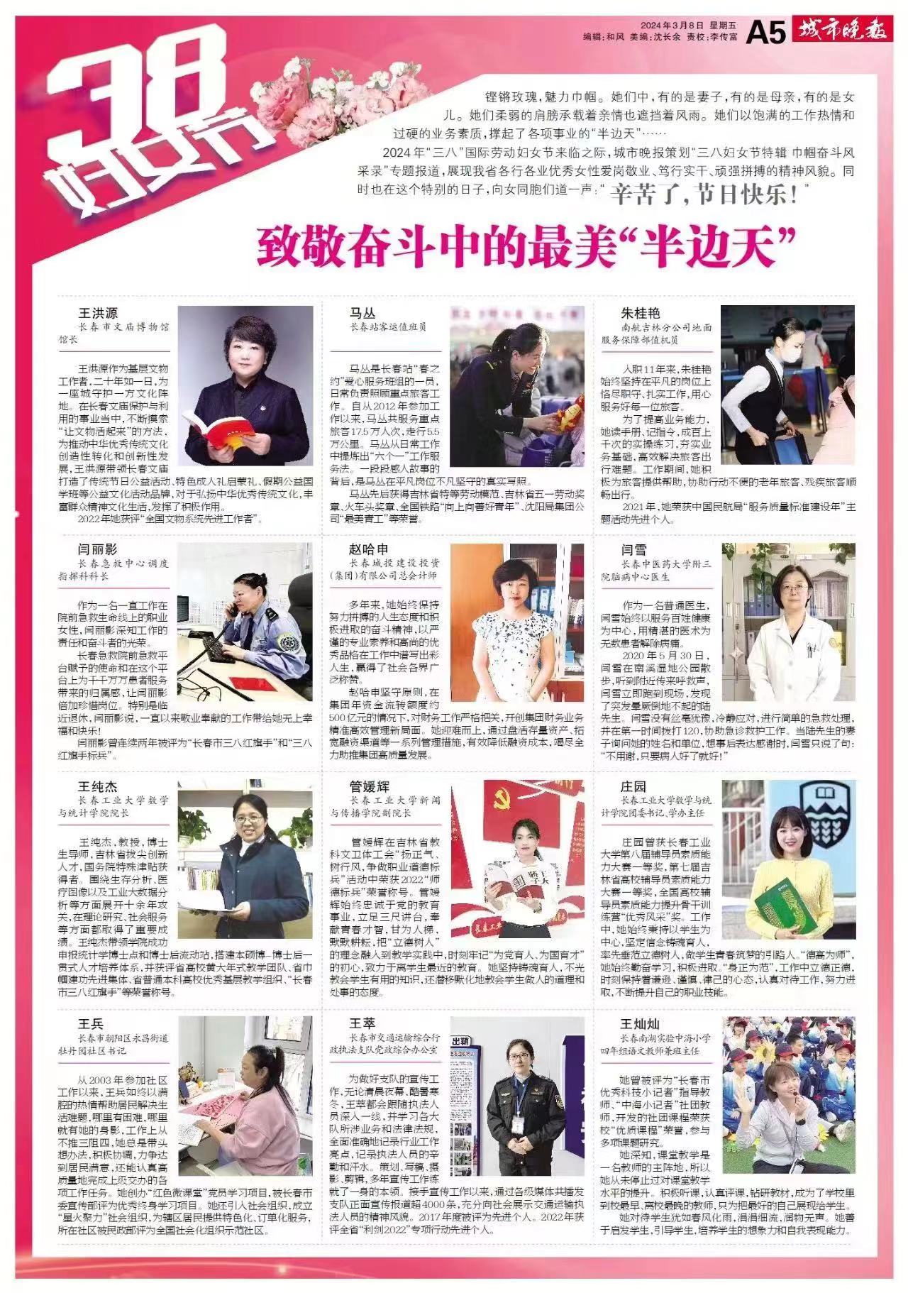 铿锵玫瑰,魅力巾帼。2024年“三八”国际劳动妇女节来临之际,城市晚报策划“三八妇女节特辑巾帼奋斗风采录”专题报道,beat365官方网站院长王纯杰与beat365官方网站团委书记、学办主任庄园这两位教师的光荣事迹被城市晚报刊登,展现了beat365官方网站优秀女性教师爱岗敬业、笃行实干、顽强拼搏的精神风貌。