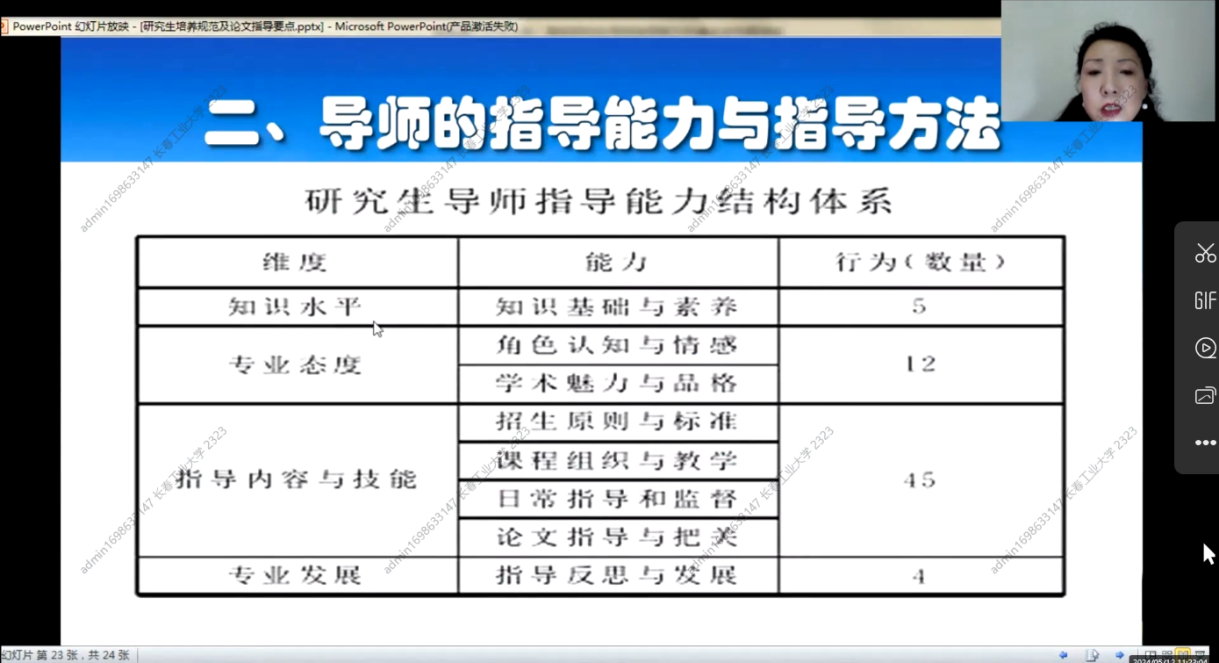 此次培训系统全面,内容丰富,对研究生培养规范及论文指导要点做了细致的培训,立德树人根本任务给予了深入细致的指导,对加强导师队伍建设,促进学科建设和研究生教育高质量发展具有重要意义。