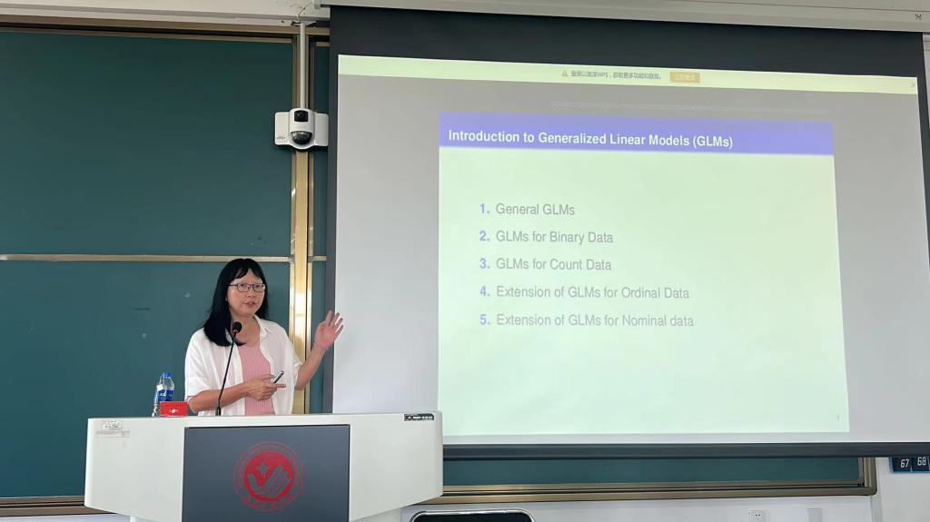 宋心远教授的讲解语言生动、准确,以其丰富的教学经验带领大家深入探讨了统计学中常见的数据类型及其对应的模型。宋教授首先介绍了广义线性模型的基本概念,详细阐述了各种数据类型的实际应用,并结合具体例子对模型进行了深入分析。她特别强调了变换函数在广义线性模型中的重要性,并详细讲解了三个主要推广过程。