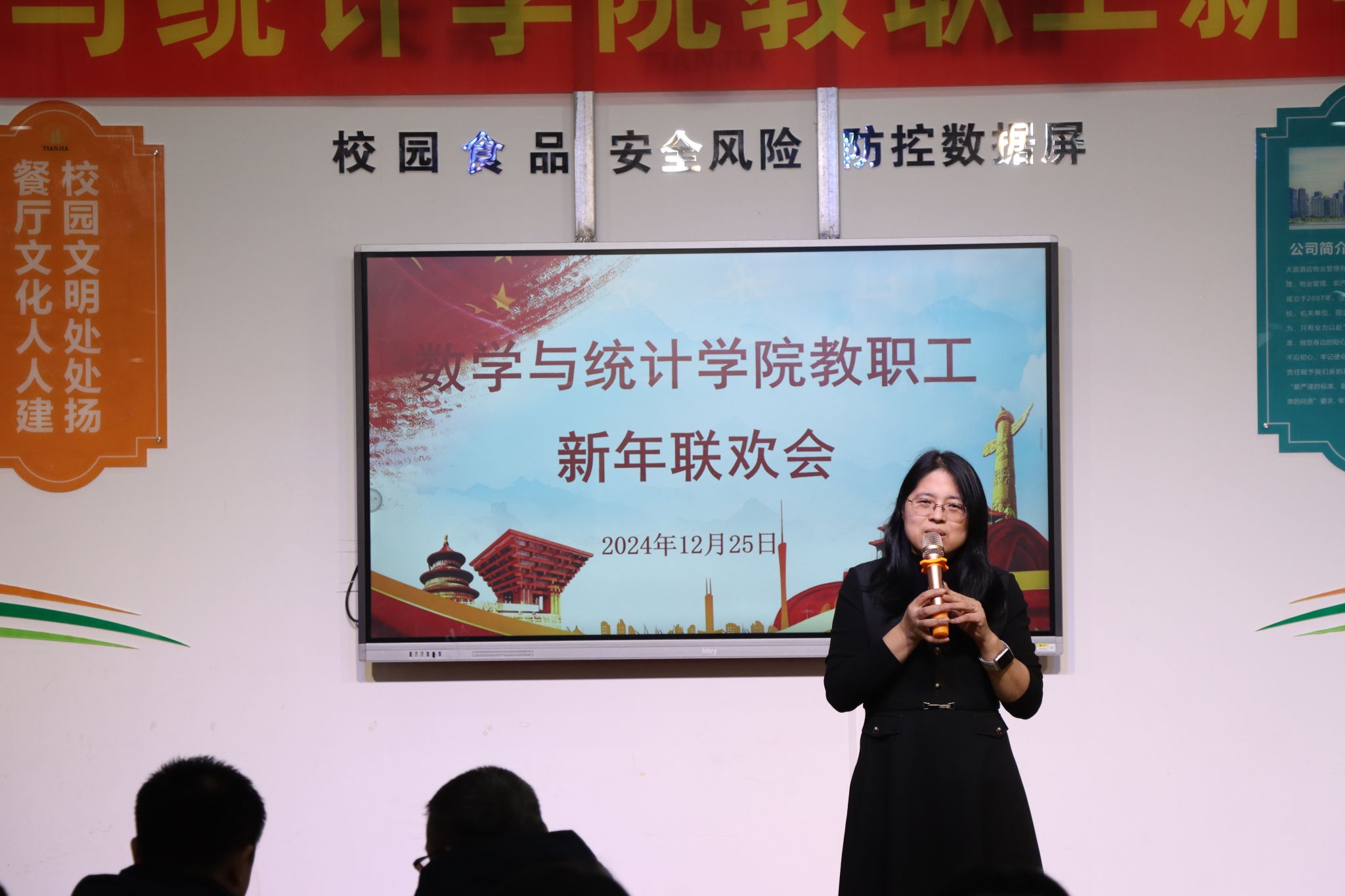 联欢会在学院党委书记王丹、院长王纯杰的致辞中拉开序幕,他们对2024年学院整体工作做出总结,对数统学院的未来提出了展望,并向全体教职工致以最真挚的新年祝福!