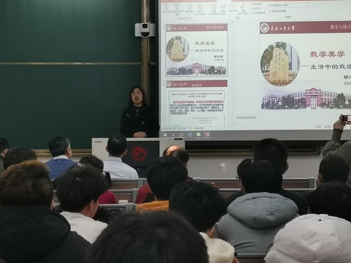 beat365官方网站团委讯(通讯员:柳笛 陈铭)为了让同学们深入领略数学之魅力,积极探索数学的奥秘,beat365官方网站邰志艳教授于2020年12月16日10:10在北湖东区主楼220教室为我院师生作以“数学美学——生活中的数学之美”为内容的学术报告,出席本次报告会的有校教育处副处长杜鹃、校美育中心副主任山川、学院党委书记朱宏伟、院长王纯杰、副院长刘铭,教师代表白琪峰、张建影、黎海彤老师及2019级和2020级全体学生。