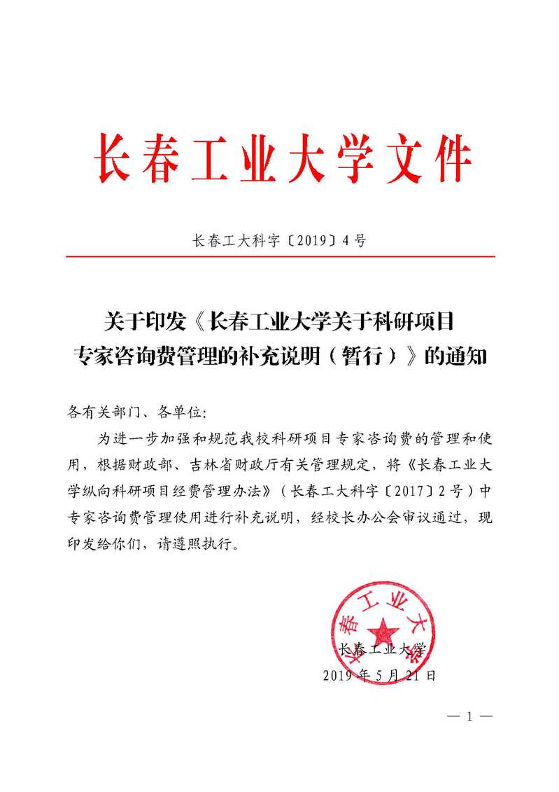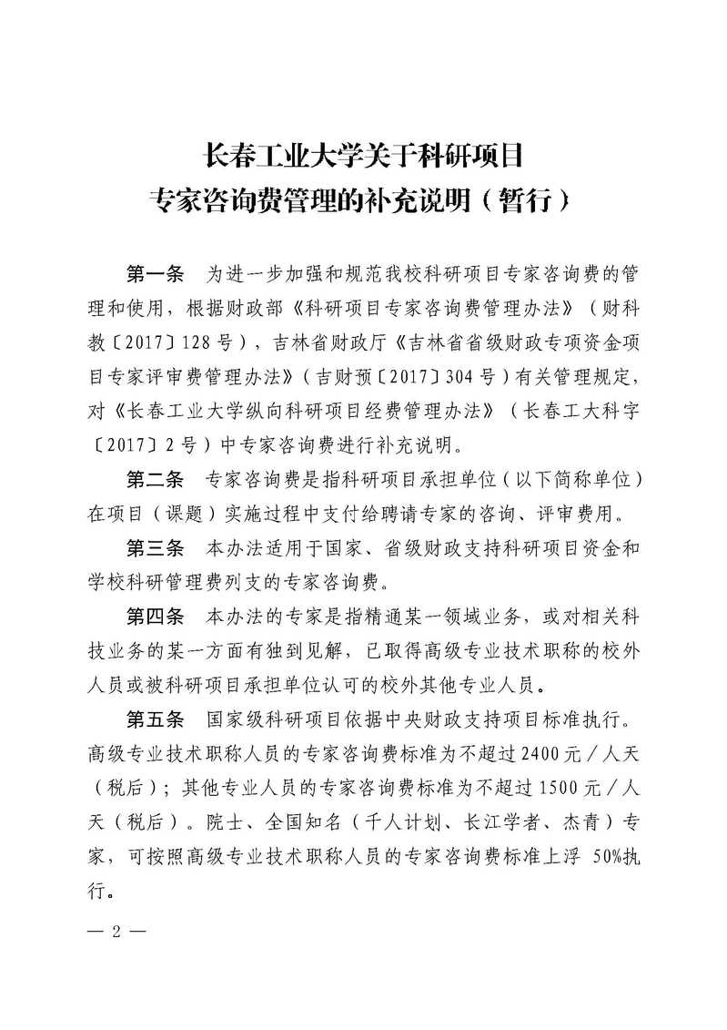 长春工大科字〔2019〕4号关于专家咨询费管理的补充说明