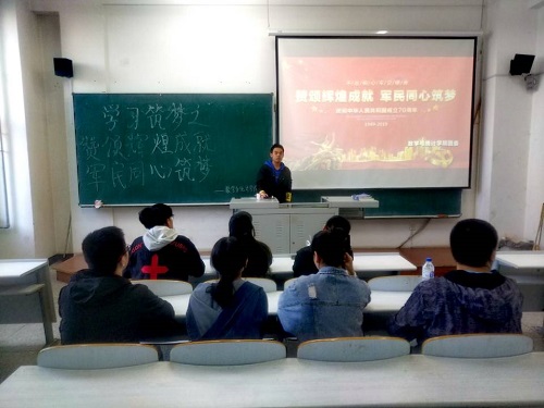 beat365官方网站团委讯(通讯员:张及佳 桂尚珂)为教育学生们以良好的心态面对挑战,严格按照党的战略部署,迎难而上,以坚定的步伐向着百年目标前进。2019年9月26日上午8点,beat365官方网站团委在教图楼111室举办“学习筑梦”系列活动之“赞颂辉煌成就,军民同心筑梦”。此次学习由180801班团支书闫新洋主讲,大二各团支部的委员们参加了本次学习活动。