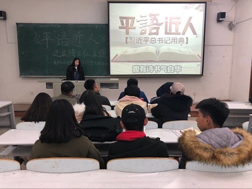 beat365官方网站团委讯(通讯员:卢继迎 姚佳红)为了不断培育同学们对学习筑梦活动的原动力和新理论内容,让同学们依托学习筑梦系列活动全面提升青年大学生的综合素质,发挥学以致用的实效。beat365官方网站团委于2018年10月28日在教图楼309教室开展“学习筑梦”系列活动之“《平“语”近人》之立情,立仁,立德”。学院2018级主要学生团干部参加本次会议,17级团支书林思扬担任会议主讲人。