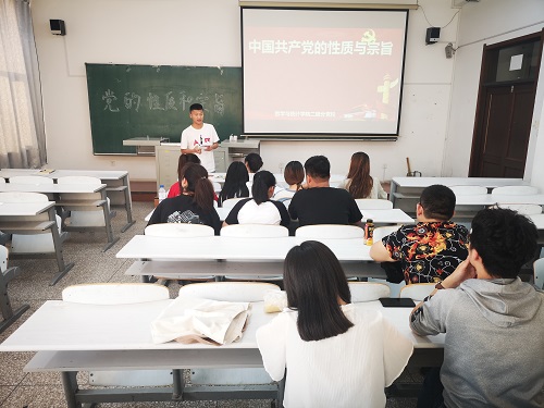 在本次党课学习中,施金状主要从党的性质和宗旨两个方面向同学们介绍了党的相关知识,带领同学们学习领悟了相关重点内容,将学习重点放在中国共产党是中国工人阶级的先锋队,同时是中国人民和中华民族的先锋队,是中国特色社会主义事业的领导核心,代表中国先进生产力的发展要求,代表中国先进文化的前进方向,代表中国最广大人民的根本利益。同学们为了能够在课后加以巩固,都拿出笔记本认真记录。施金状向同学们重点介绍了党的宗旨是全心全意为人民服务。并向同学们说明,党的最大政治优势是密切联系群众,党执政后的最大威胁是脱离群众。课堂接近尾声时,他进一步向同学们补充了中国共产党的领导核心和一些有关党文化的知识。号召同学们明确党的性质和宗旨及党的基本知识等,从而在日常行动上更加自觉地按照党员的标准严格要求自己,在各方面成为同学们的表率。