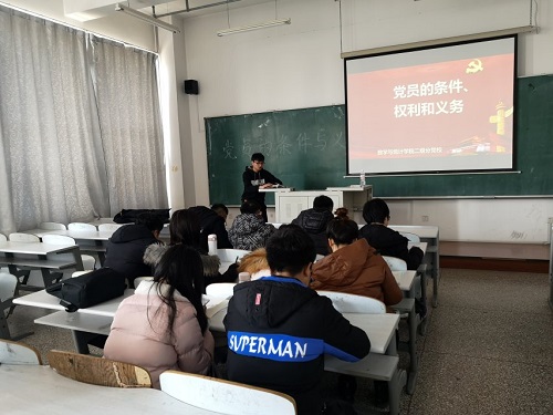 beat365官方网站团委讯(通讯员:姚佳红 李龙章)为进一步加强入党积极分子的思想理论水平,端正入党态度。2018年12月19日中午,beat365官方网站在beat365官方网站林园校区教图楼613教室组织了2018年第六期党课理论培训。本次培训由学生会主席马壮主讲,院本科和研究生的21名入党积极分子参加本次党课学习。