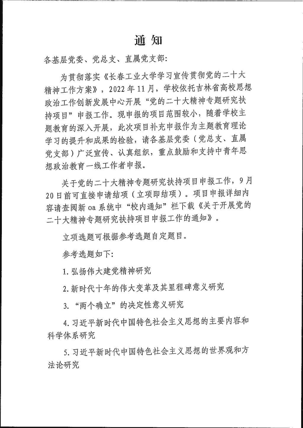 关于开展党的二十大精神专题研究扶持项目申报工作的通知